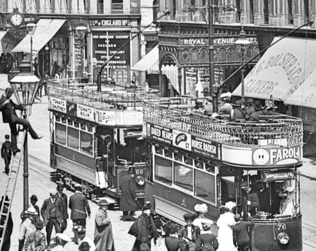 The IRA were the first to extend indiscriminate attacks from shootings to bombings. In late November 1921, bombs (hand grenades) were thrown onto two trams, one in Corporation St on 22nd November and one in Royal Avenue two days later. The trams’ destination boards made it clear that the first was carrying shipyard workers home from Workman Clark, while the other was bound for the Shankill.19