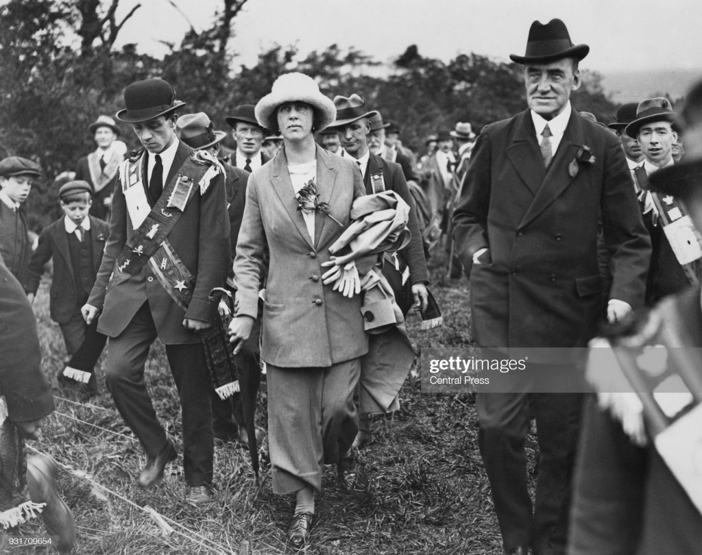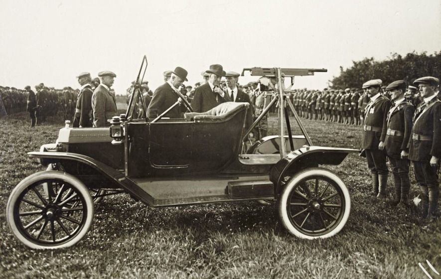 Edward Carson arriving at the Field in Finaghy on the Twelfth, 1920; his speech there helped accelerate the revival of the UVF