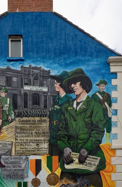 Elizabeth Corr (pictured right on this Ormeau Road, Belfast mural) was one of several Cumann na mBan members to lose their jobs