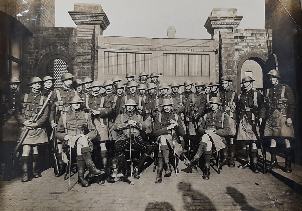 Officers and men of 1st Battalion, Seaforth Highlanders at their billet in Mackie’s Foundry on the Springfield Road (© PRONI, D3964/H/28; image used by kind permission of the Deputy Keeper of Records, PRONI)