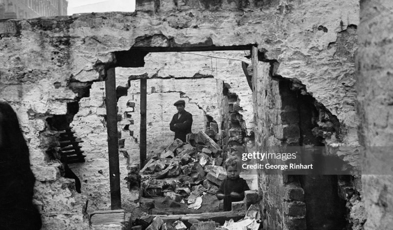 Back yards of houses in Vere Street tunnelled through by residents so that they could move about without being seen by snipers