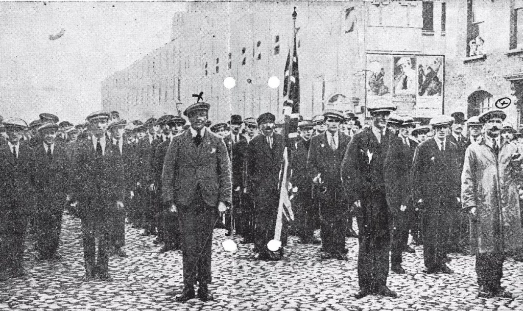 Recruitment into the Imperial Guards continued during the autumn and on 29 October, its North East Battalion held a parade on the York Road. Further illustrating the shared working-class background of the UULA, UESA and Imperial Guards, a UULA councillor, James Turkington, was pictured at the centre of a group of Imperial Guards officers on that occasion and at the head of the parade itself.