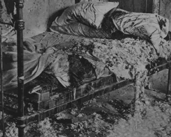 The aftermath of a loyalist bomb attack in Thompson Street in Ballymacarrett on 18 March 1922: two Catholic women, Annie Mullan and Rose McGreevy, were killed as they slept (Illustrated London News, 25 March 1922)