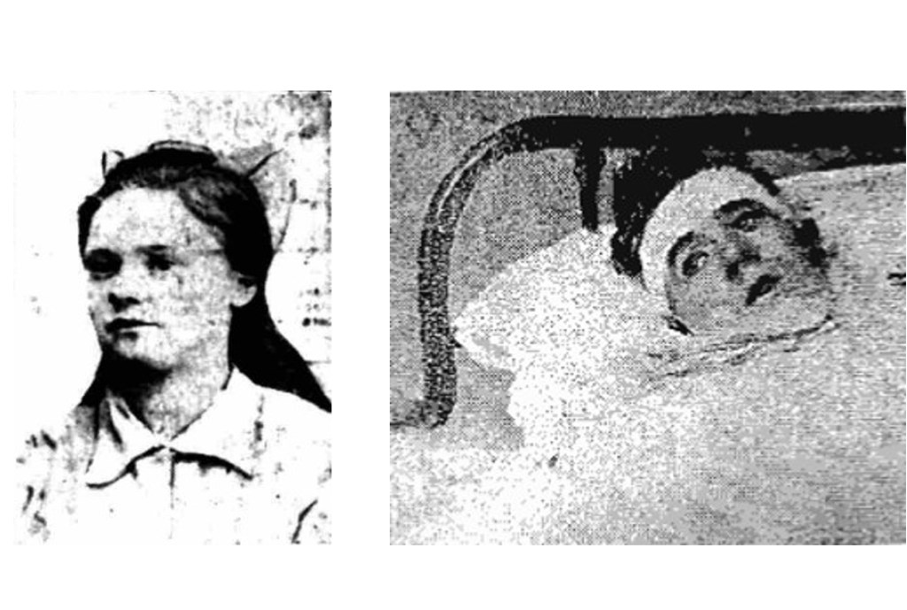 (L) Jane Theresa O’Reilly (Belfast Weekly Telegraph, 10 September 1921); (R) Little York Street, where she was shot (© National Museum of Northern Ireland, Hogg Collection)