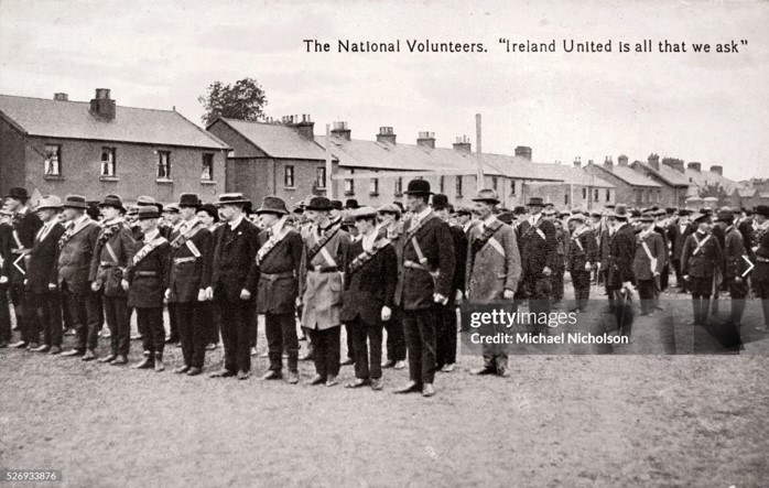 Irish National Volunteers in Dublin in 1919; the organisation was revived in Derry and Belfast in 1920